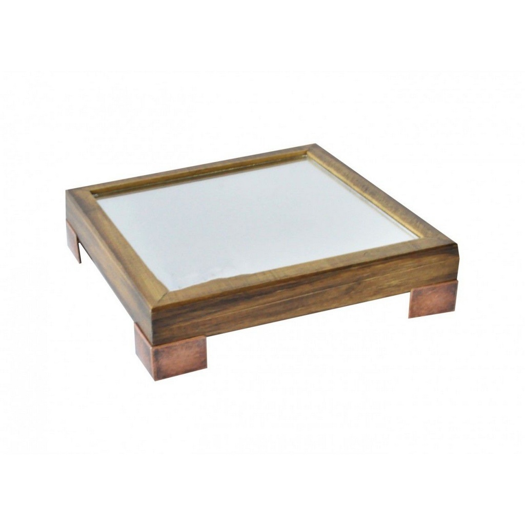 Bandeija decorativa em madeira pinus, espelhada e pés decorado.