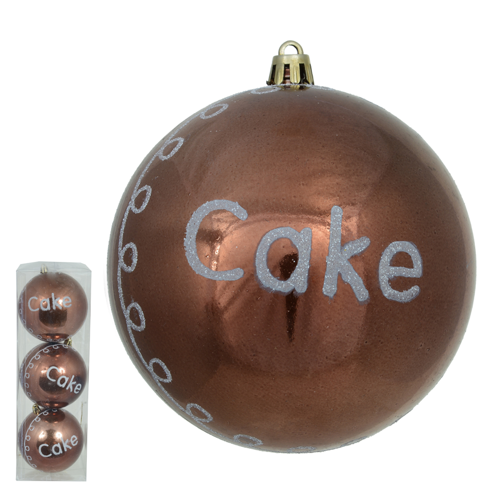 Bola Decorada Cake de Natal Fosca em PVC com 3 Unidades (Marrom) - 10cm