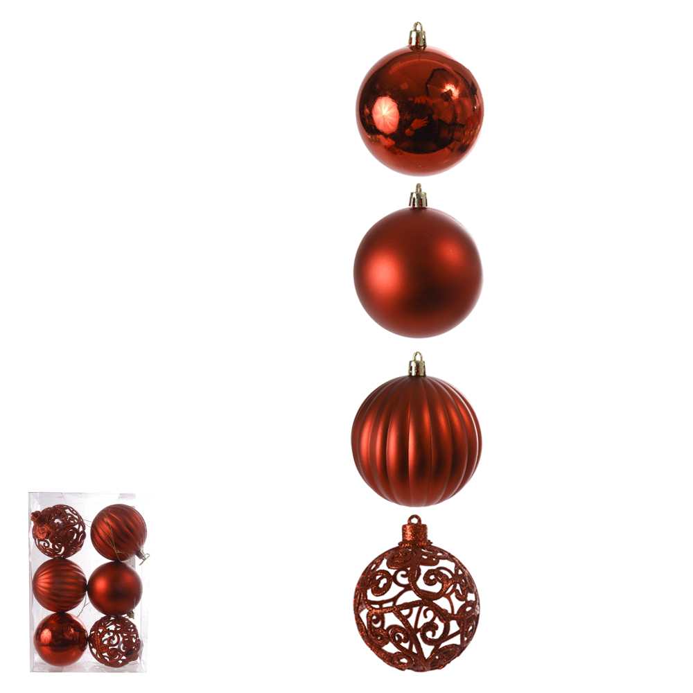 Complete sua árvore de Natal com este lindo kit com 6 bolas decoradas na cor vermelha, feitas em PVC resistente e leve, perfeitas para garantir brilho e elegância à sua decoração natalina. Com 8 cm de diâmetro, são ideais para distribuir pela árvore ou para decorar guirlandas e arranjos festivos.