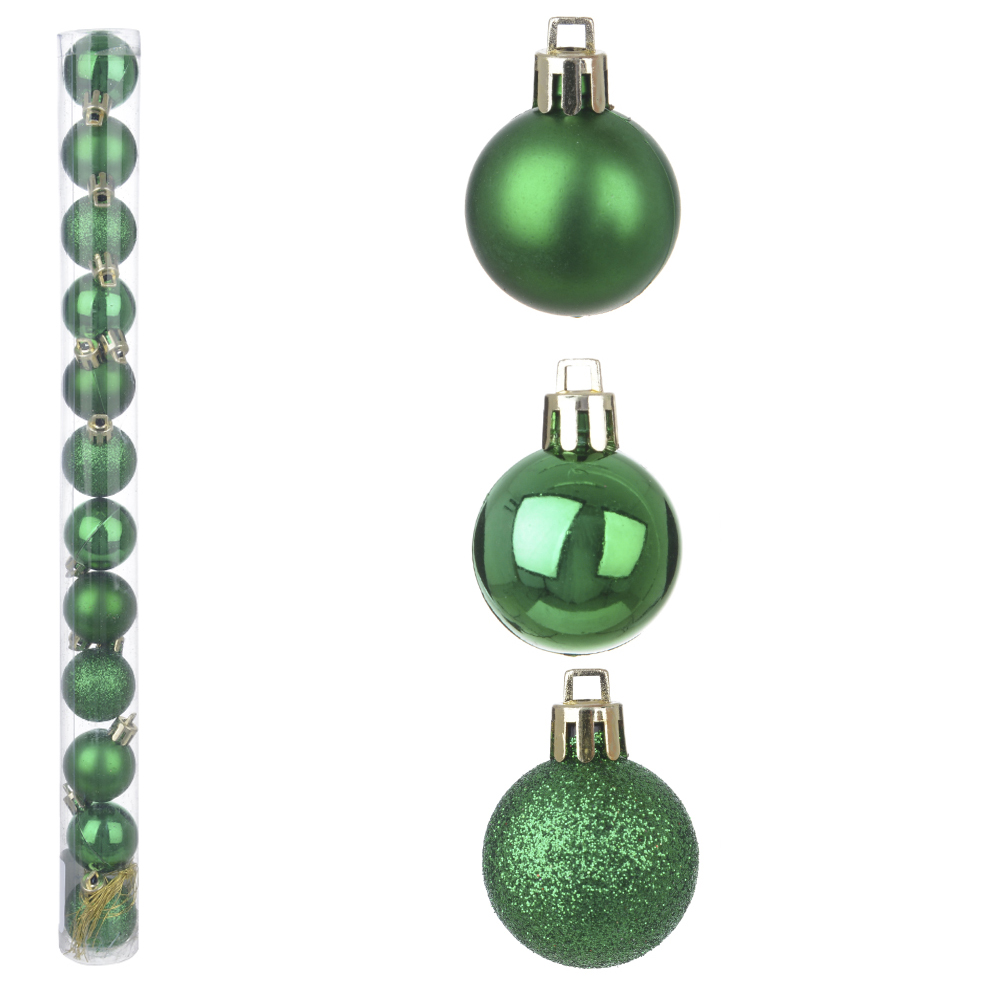 Bola de Natal Mista em Tubo com 12 Unidades (Verde) - 3cm