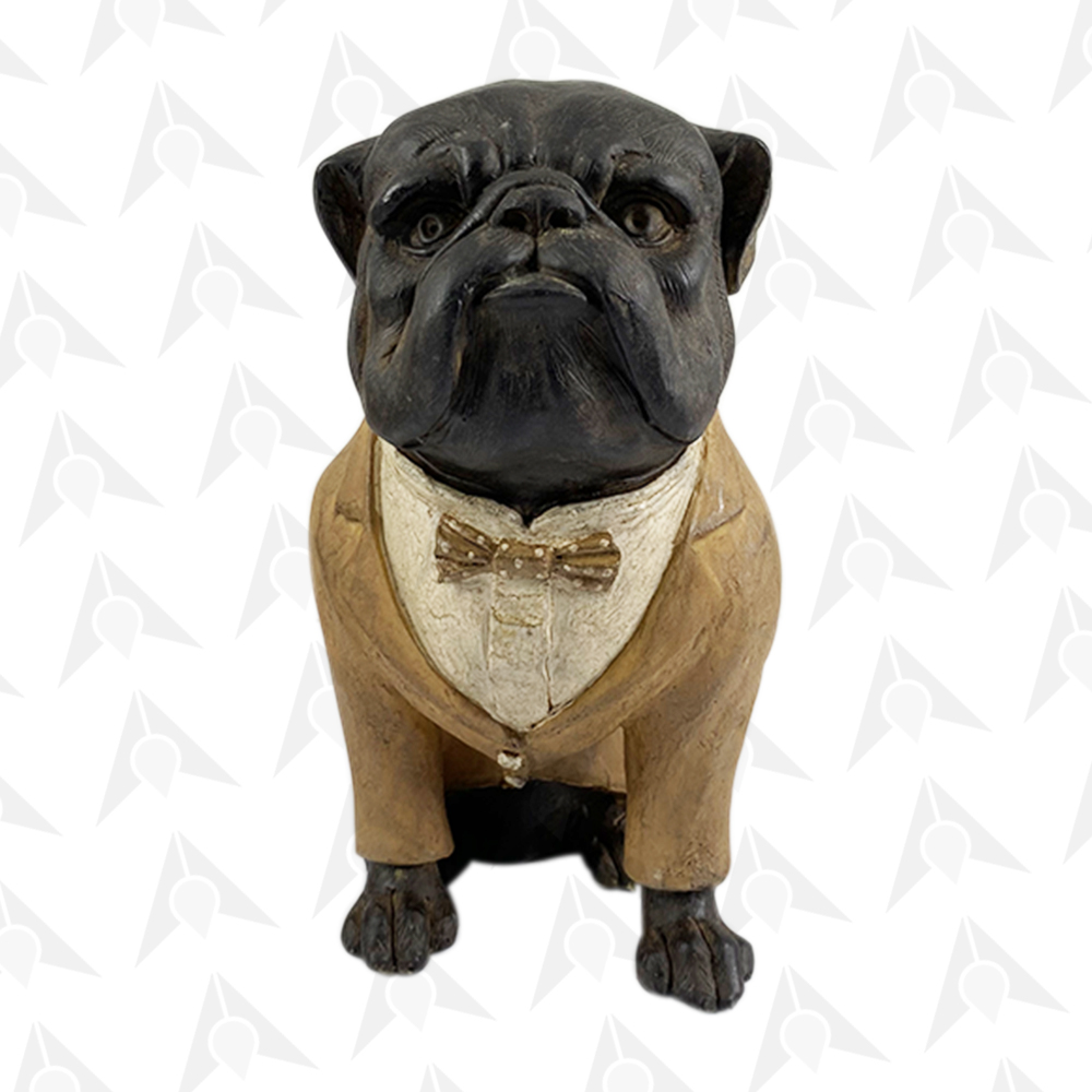 Apresentamos com entusiasmo o encantador Cachorro Decorativo Buldogue com Terno Marrom, uma peça de arte que combina a personalidade cativante do buldogue com um toque de sofisticação vestida em um terno marrom impecável. Esta peça única adiciona um elemento de charme e elegância à sua decoração.