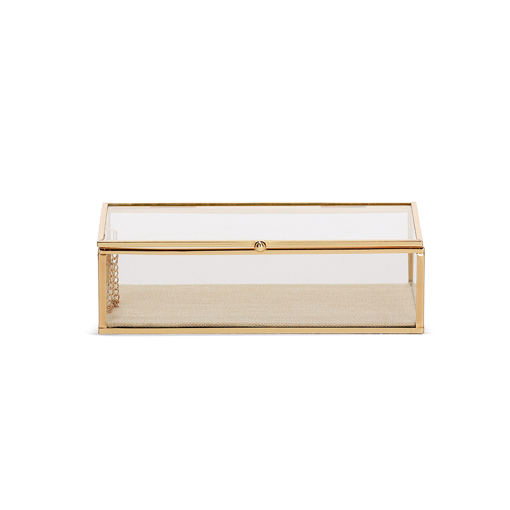 Caixa Organizadora em Vidro com Metal e Forro de Linho | 21x13x6,5cm | Elegância Natural para Sua Decoração