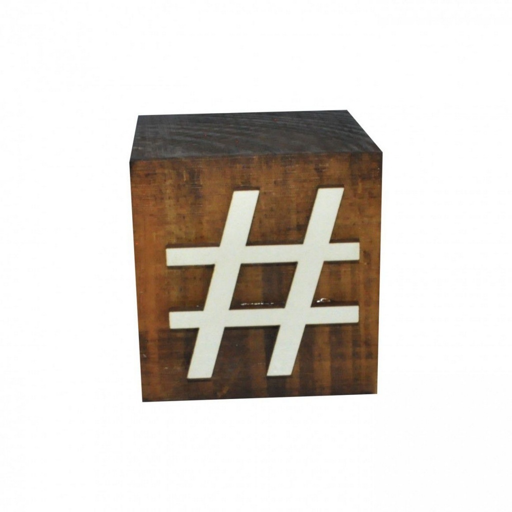 Cubos em madeira pinus, letreiro branco, palavra #.