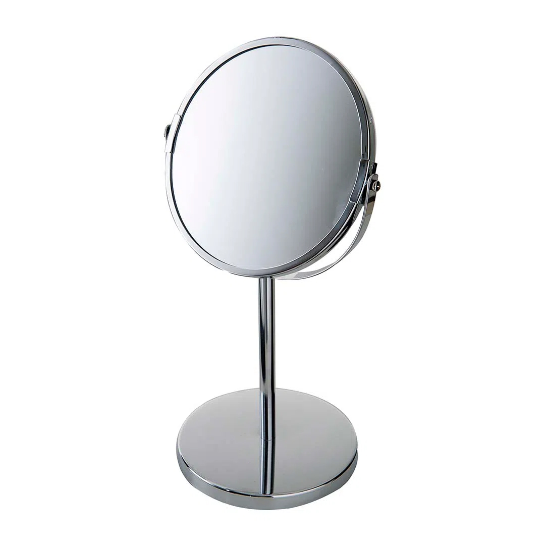 Com design moderno e sofisticado, o Espelho de Aumento Dupla Face com pedestal permite maior precisão na hora de barbear, modelar sobrancelhas, fazer aquela maquiagem especial ou colocar as lentes de contato. Sua estrutura, produzida em aço cromado, confere qualidade e durabilidade ao produto. Com giratória do espelho em até 360°, uma de suas faces é normal e a outra amplia a imagem refletida em até duas vezes. Seu pedestal alto permite que seja posicionado em diversas bases, direcionando facilmente o espelho na posição desejada. Perfeito para compor seu banheiro ou quarto e até mesmo para auxiliar durante as gravações de vídeos para a internet.