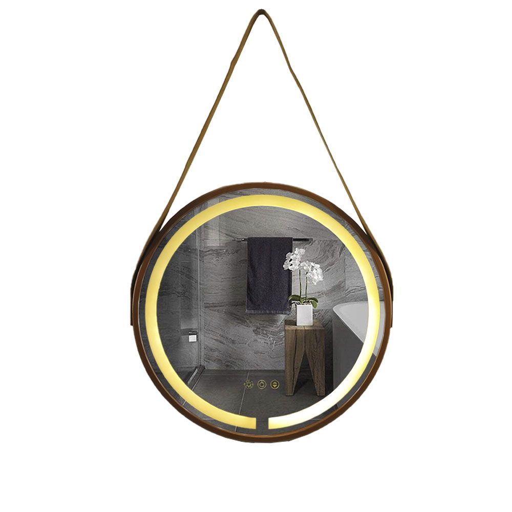 Espelho Decorativo Com LED Moldura Marrom e Cabo