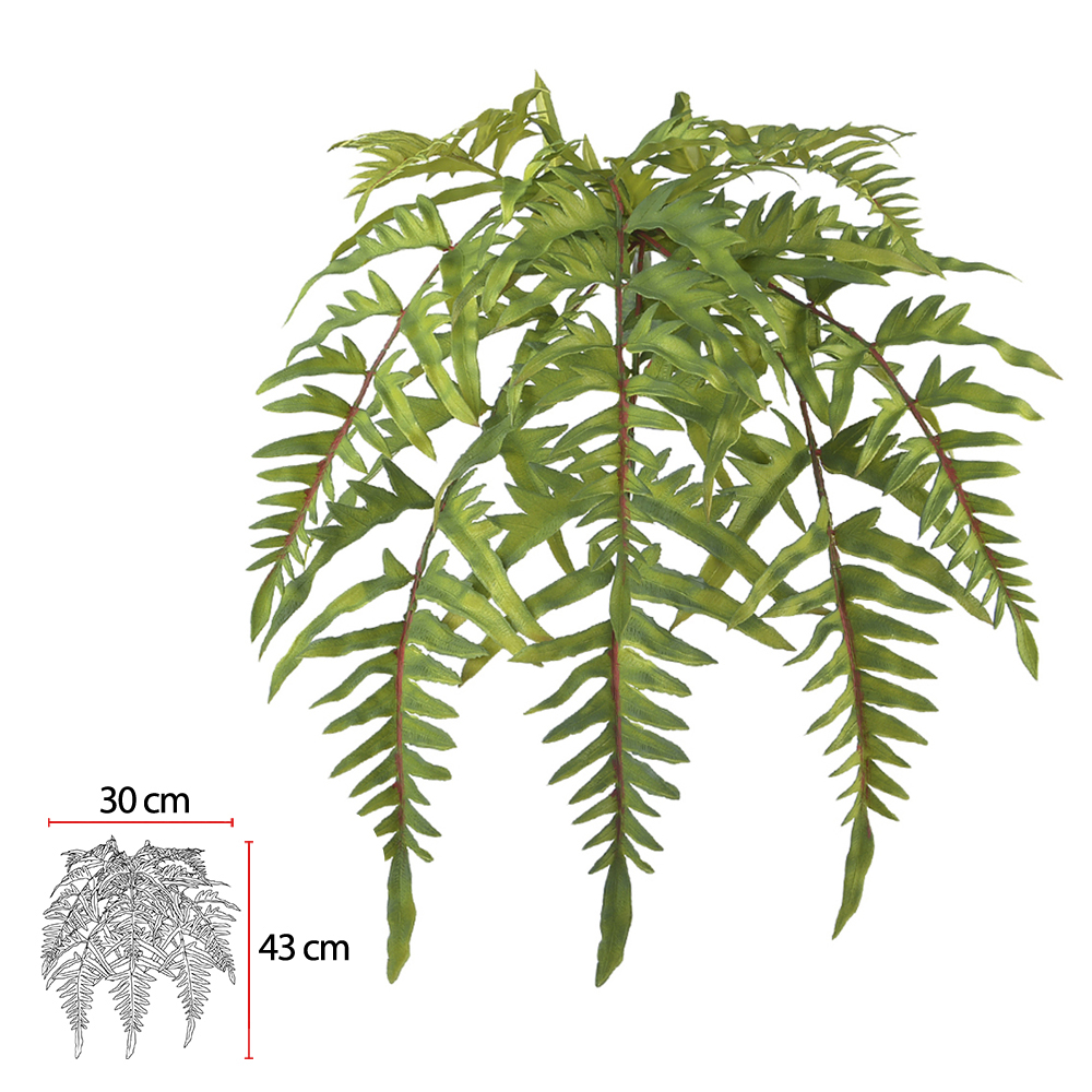 Samambaia artificial pendurada com impressão realista em plástico, medindo 46 cm de comprimento, na tonalidade verde 2 tons (Verde 2T), ideal para decorar espaços com um toque natural e prático.