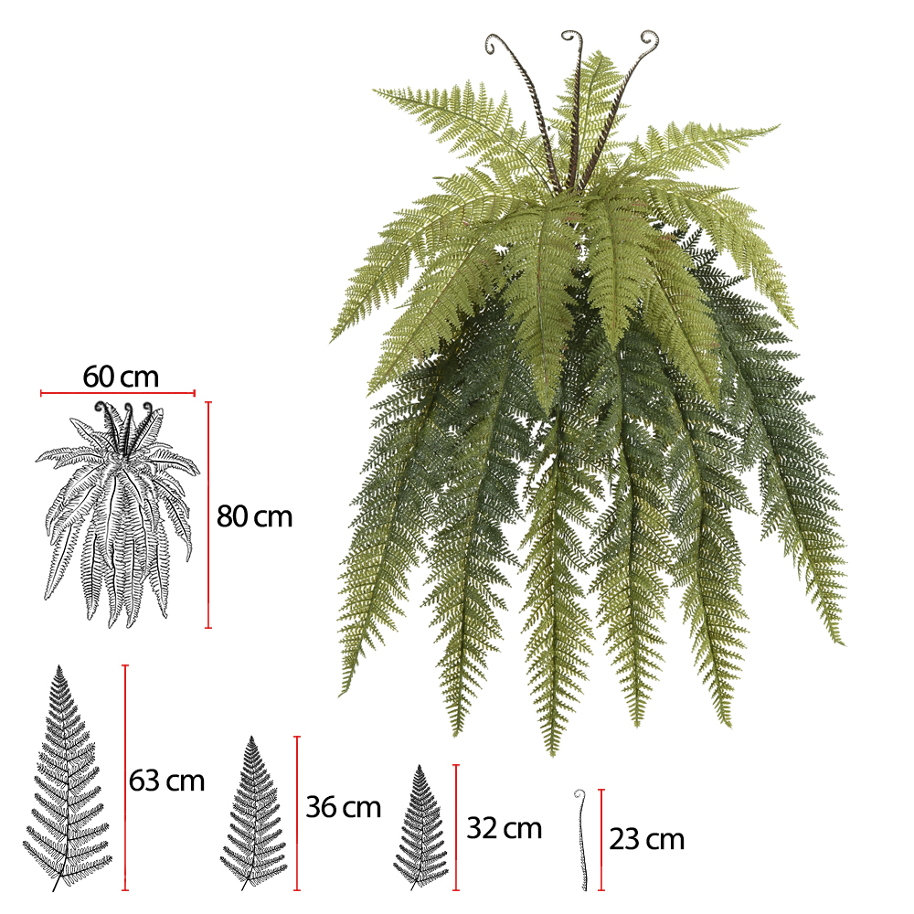 Samambaia artificial pendurada, confeccionada em plástico com toque realista, ideal para decoração de ambientes internos e externos, conferindo um aspecto natural e sofisticado.