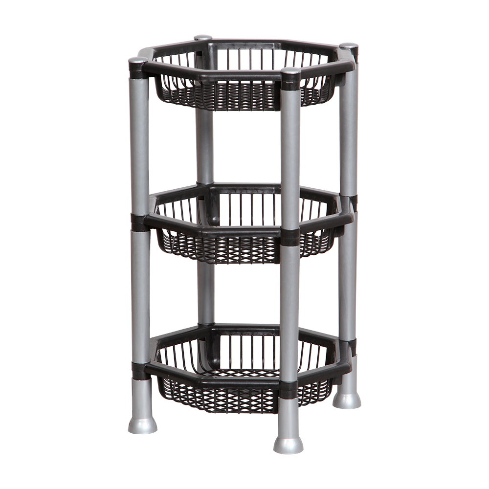 Fruteira Oitavado Empilhável 3 Andares Preto