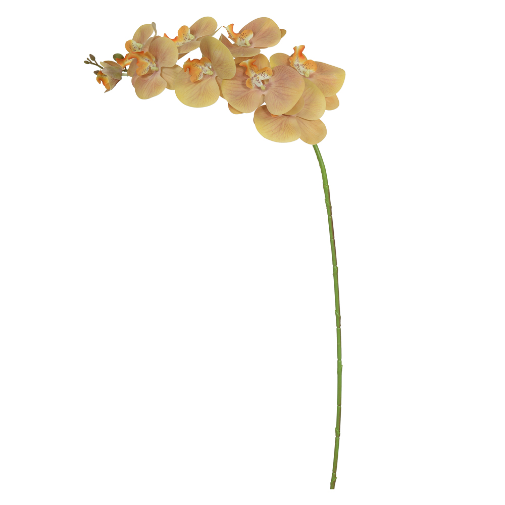 Haste artificial com 9 flores de Orquídea Phalaenopsis, em tonalidade laranja outono, com acabamento real toque, que oferece uma textura extremamente realista ao toque. Um item ideal para adicionar sofisticação e cor vibrante a ambientes internos.
