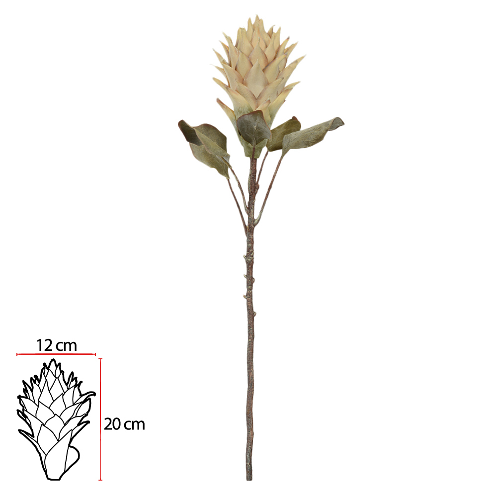Haste artificial com flor de protea na tonalidade creme, sofisticada e de presença marcante. Ideal para arranjos tropicais, modernos ou minimalistas.