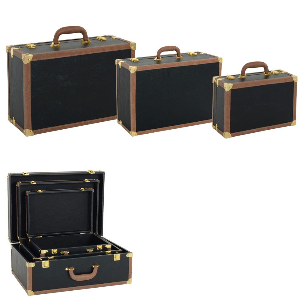Kit Maleta MDF Conjunto 3 - Preto Caramelo