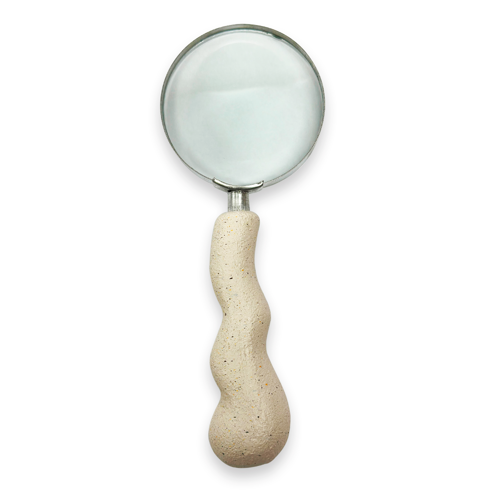 Fabricada em poliresina de alta qualidade, esta lupa possui um cabo ondulado que adiciona um toque de elegância ao seu design. A poliresina proporciona durabilidade e leveza à peça, facilitando o manuseio e permitindo que ela seja exibida em uma mesa, prateleira ou estante com facilidade.