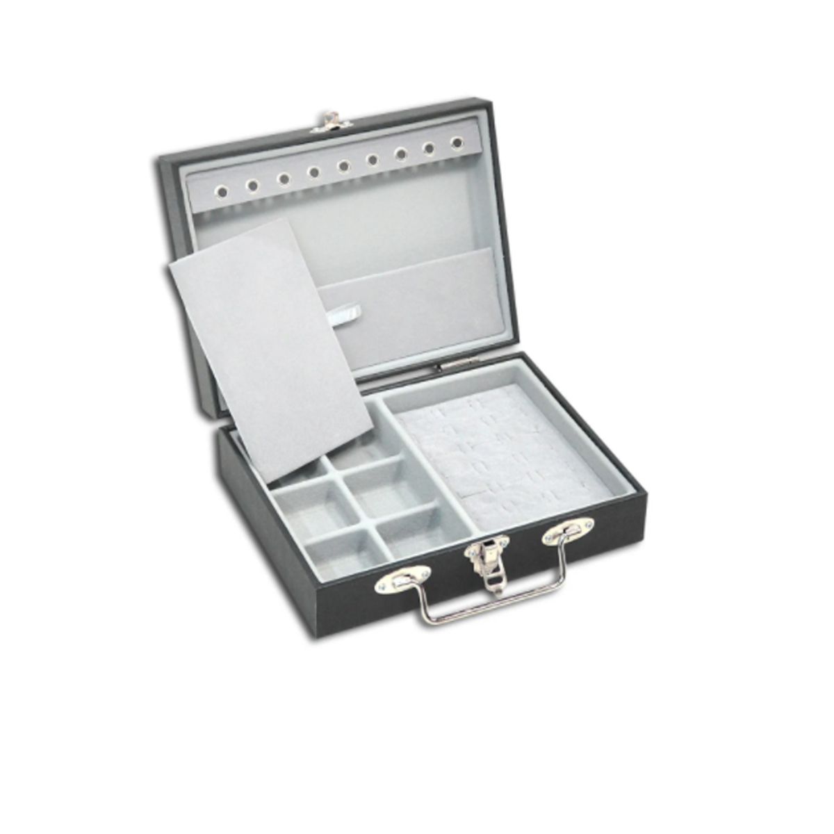 Maleta para joias confeccionada em MDF, com revestimento externo em couro sintético e interno em veludo de 1ª linha.