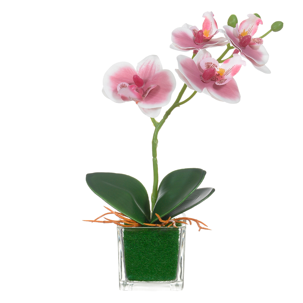 Orquidea Artificial Real Toque C/Vaso De Vidro (BRANCO BEAUTY) 23cm