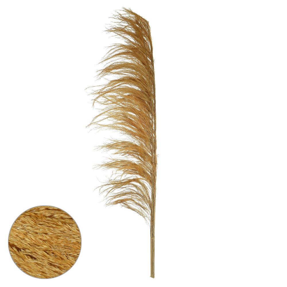 Aposte na tendência das flores secas com a Pluma Pêndão Canabrava Desidratada, com 3 hastes alongadas em tom ocre quente e sofisticado. Com 1,50 metro de altura, essa peça é ideal para arranjos altos e composições impactantes que trazem charme natural e textura orgânica aos ambientes.