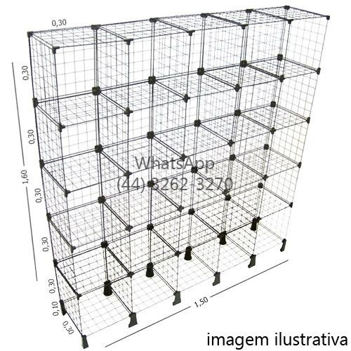 Balcão aramado modulado com pintura Epóxi e conectivos em resina ABS de alta resistência no tamanho de 1,50 x 1,60 x 0,30. Ideal para exposição de produtos!