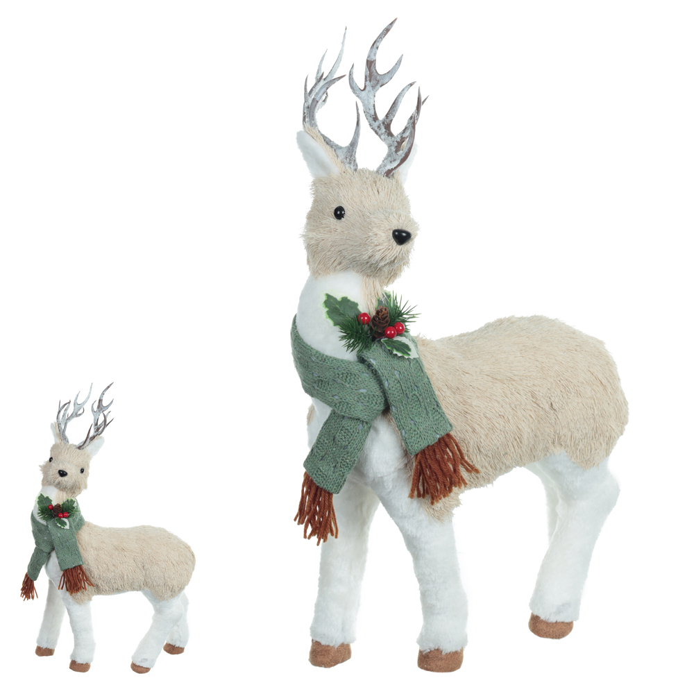 Decore seu espaço com charme e naturalidade nesta linda rena natalina feita em PE, revestida com sisal na tonalidade verde bege. Com medidas de 53 cm de comprimento por 18 cm de largura, é perfeita para complementar mesas, prateleiras e outros ambientes com um toque rústico e elegante.